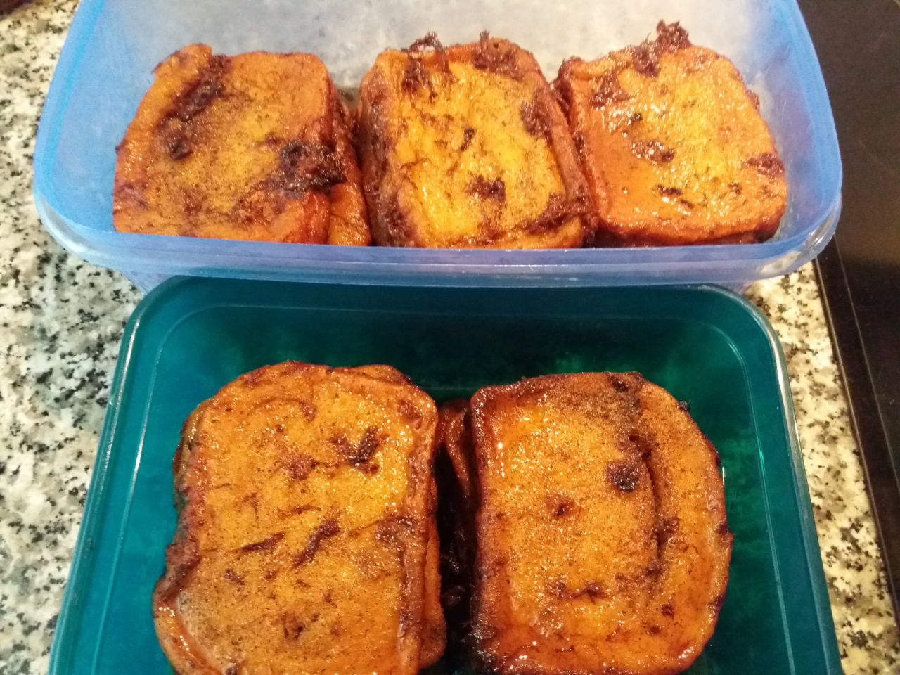 Siguiendo con las torrijas, por fin encontré la foto de las cuarenta y cuatro que se hizo.