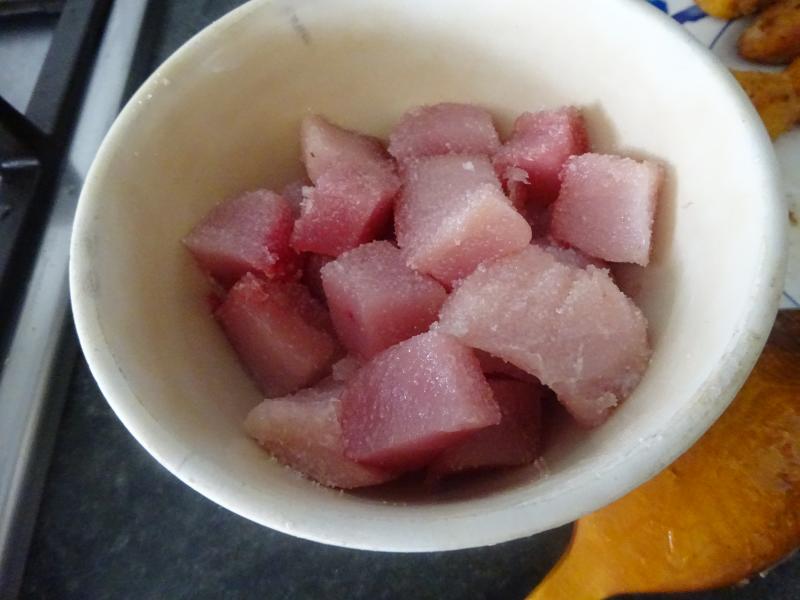 Ayer mi hermano pescó un "mono" bonito pequeño de unos tres (3) kilos, me dío la mitad y estoy haciendo un plato netamente marinero del Cantabrico: "Sorropotún", lo que en el Pais Vasco llaman "Marmitaco".