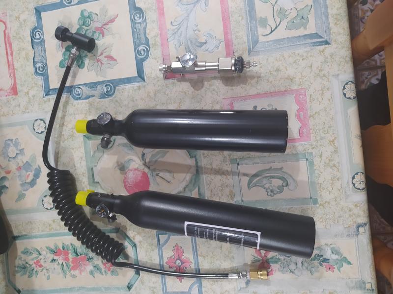 Buenas tardes se venden 2 botellas para cargar carabinas pcp de 1/2 litro cada una con su estación de carga .las botellas llevan su regulador y anillos de rotura de seguridad