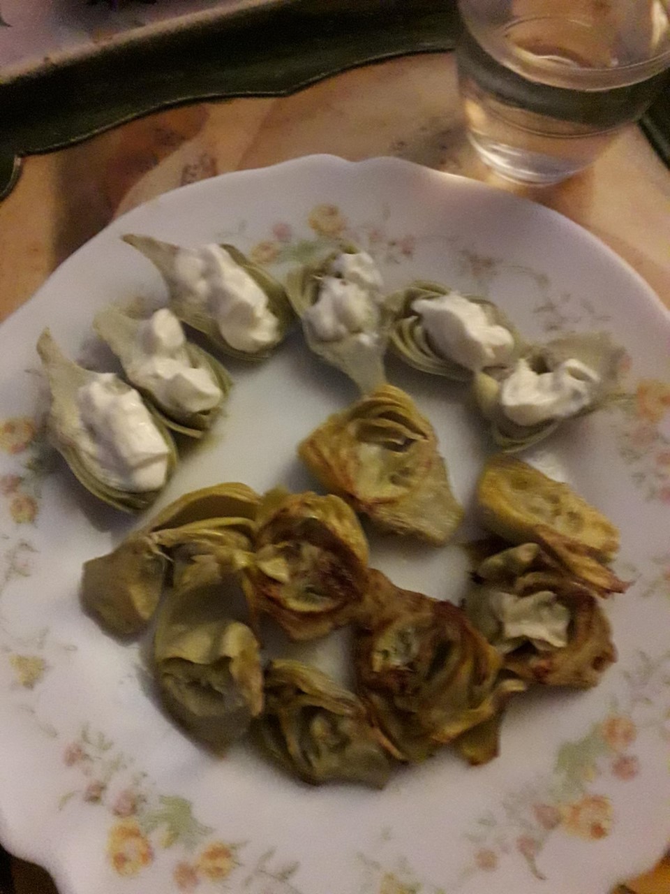 Cena con alcahuciles variados ( de lata): A la plancha y al "natural" con mayonesa.