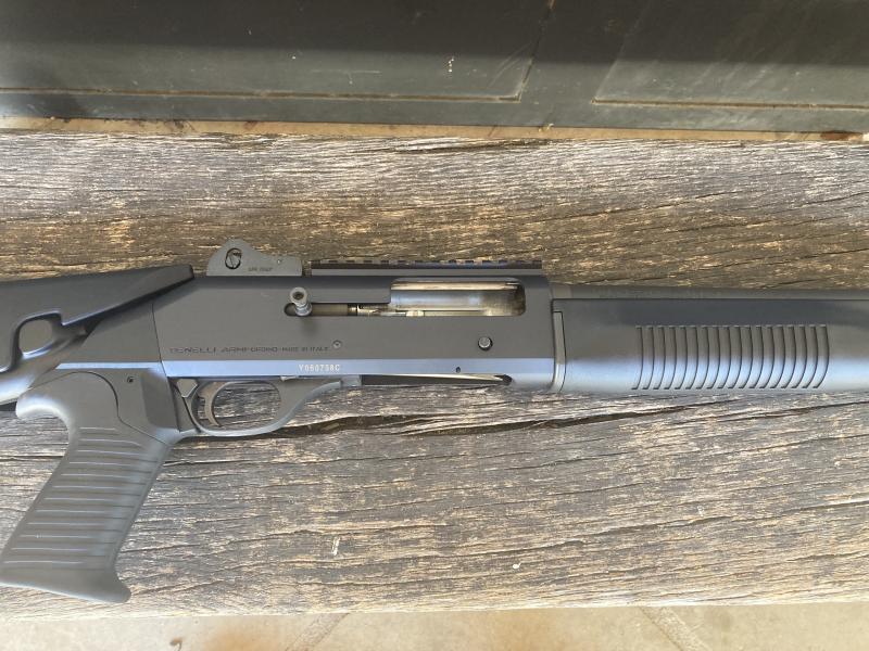 No voy a decir nada de esta espectacular escopeta que no sepais ya... calibre 12 licencia E, ideal para perreros. Esta habilitada para 3 cartuchos como exige la norma, pero capacidad para 7. Dos choques originales, de 3 y 4 estrellas. Impresionante precision para este cañon fosfatado de 46cm. Culata regulable en 3 posiciones preestablecidas. Se desmonta sin ningun tipo de herramientas para su mantenimiento. Miras abiertas.