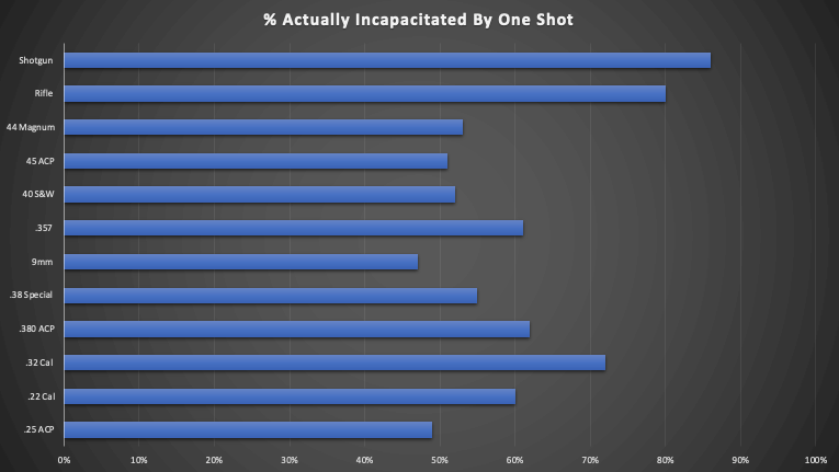 Los calibres más pequeños tienden a requerir más disparos hasta que la persona queda incapacitada.