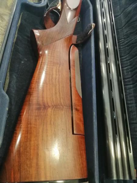 Extraordinaria escopeta ,de la más, que prestigiosa firma de armas Italiana. Resulta una autentica delicia disparar con ella, tanto por su reparto de masas, que la hace muy equilibrada , como por su expectacular plomeo en ambos cañones . Su estado pasaría por nuevo , perfecta de pavón, maderas y mecanismos . Usada en contadas ocasiones. Cantonera mejorada especial antirretroceso. Culata regulable. cañón de 76 y 1 y 2 estrellas .Maletín original rigido. Se cambia por rifle de caza o visor de mi interés y similar valor de nuevo y estado, que mi arma.