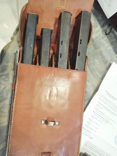 Arma magnificamente conservada,posiblemente única en España,con certificado BOPE actual y dos bolsas rígidas de cuero de la época que se utilizan como porta cargadores ,así como 8 cargadores, procedente de un regalo de la legion CONDOR,se cambia por rifles de caza o escopetas plateras de mi interés,con poca antiguedad.Se ruega mensajes por privado.No tener en cuenta la ultima foto,pertenece a otra arma. .CAMBIADA SE RUEGA CERRAR