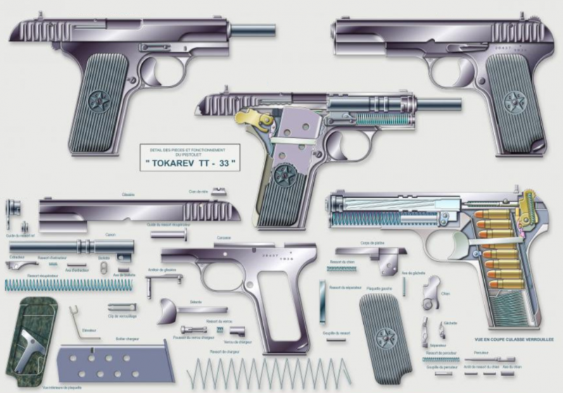 Pistola TT33 tokarev, calibre 7,62x25mm fue una de la armas de puño utilizadas por los soviéticos y que junto a pistolas ametralladoras era usada por los tiradores especiales, el calibre de la pistola resultaba contundente a cortas distancias.