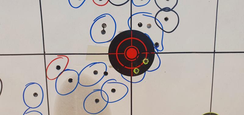 El primero se me ha ido a la izquierda por la posicion tan incomoda que he tenido que adoptar para alinear miras.