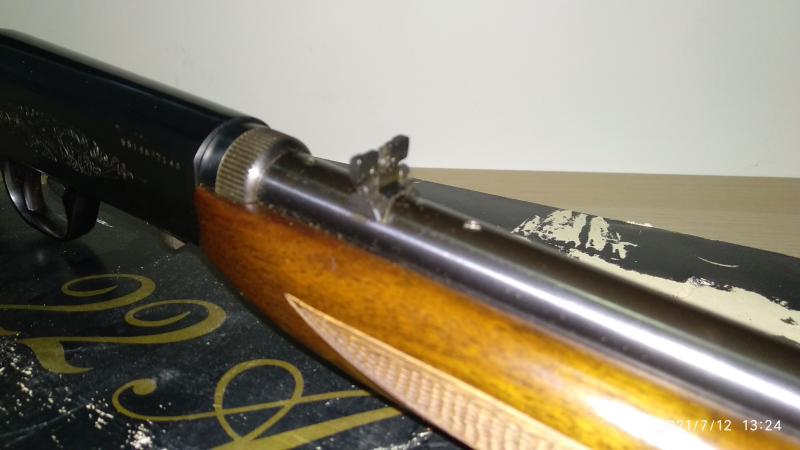 La compré en el año 83 ó 84. Hice con ella unos 200 disparos en ese mismo año, y después.... nunca más se ha vuelto a disparar. Fué un capricho junto a otros amigos. La he sacado cada año de la funda para contemplarla, y pasarle un trapo. Está como el primer día o quizá mejor; parece que la madera y el metal han ganado con el tiempo, como los buenos caldos. Se puede comtemplar en las fotos, no tiene ni marcas de las manos en el picado de la madera.