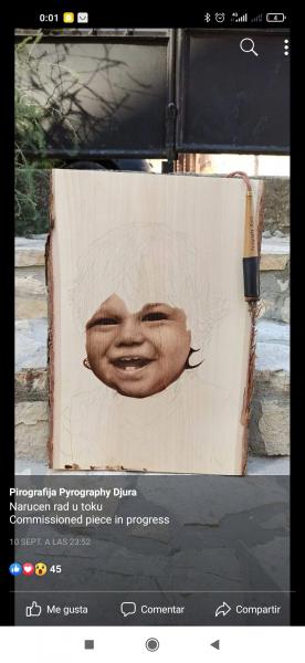 Pues yo le veo su arte, y creo que sea foto, calco, o lo que sea, no lo veo tan fácil hacer eso sobre una madera con calor.