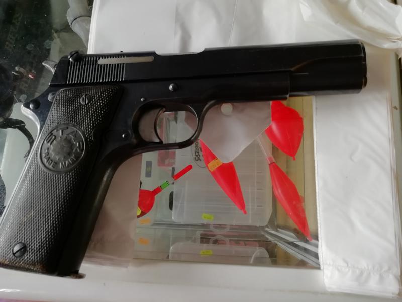 Aparentemente es una STAR modelo 1922 de las que se fabricaron con destino a la Guardia Civil, es decir, con casi 100 años de antigüedad. A pesar de esto, su estado de conservación es bastante bueno.