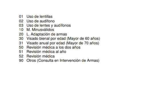 Algun compañero que sepa el significado de los codigos que aparecen en el reverso de la licencia de armas, en la columna 4, restriciones?.
