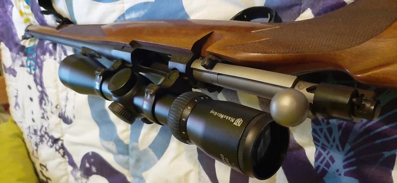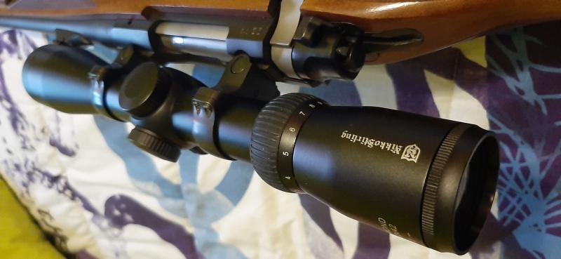 Rifle muy compacto y que pese a su corto cañón tiene una magnífica precisión. Incluidas anillas originales de 30 mm . El conjunto sería 800 euros, con visor Nikko Stirling de 3-12×42 con punto iluminado muy versátil y nítido con luz diurna. El rifle se encuentra en Madrid zona sur.