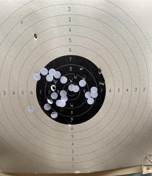 Estuve por probar municion comercial sellier&bellot de 91 grains que creo que debe dar mejor agrupación pero no las he podido conseguir en mi armería y en otras supone un engorro por tener que ir a la I.A. a recogerlas.