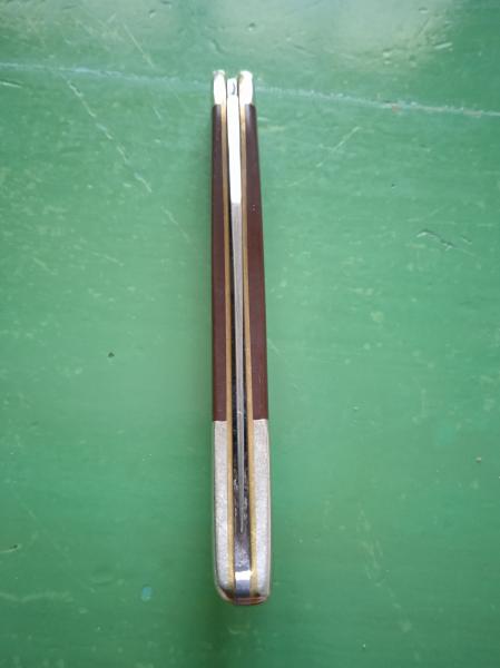 Empuñadura montada sobre forros de latón con cachas sinteticas.