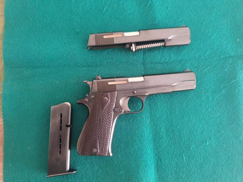 Te puede interesar un cambio por pistola LLAMA Minimax Bicolor Ca. 45 Fabricada en el 2004 muy pocos disparos (Segunda Arma de un Profesional G.C.) tres cargadores y muelles de recambio es copia idéntica de la Sprinfield caja original si te interesa llamame al 640533504 wsapp saludos .Busch