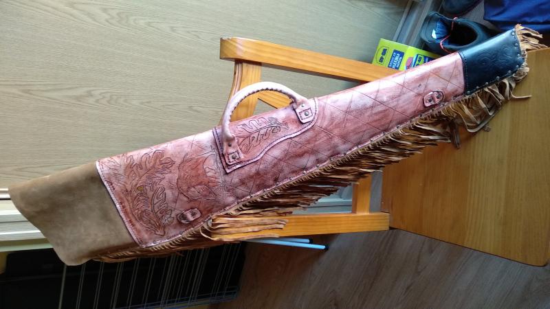 Es un scabbard modificado ya que en España tenemos que llevar la culata tapada también no vaya a ser que alguien se sienta intimidado. Así que le hice un añadido y queda bastante bien.
