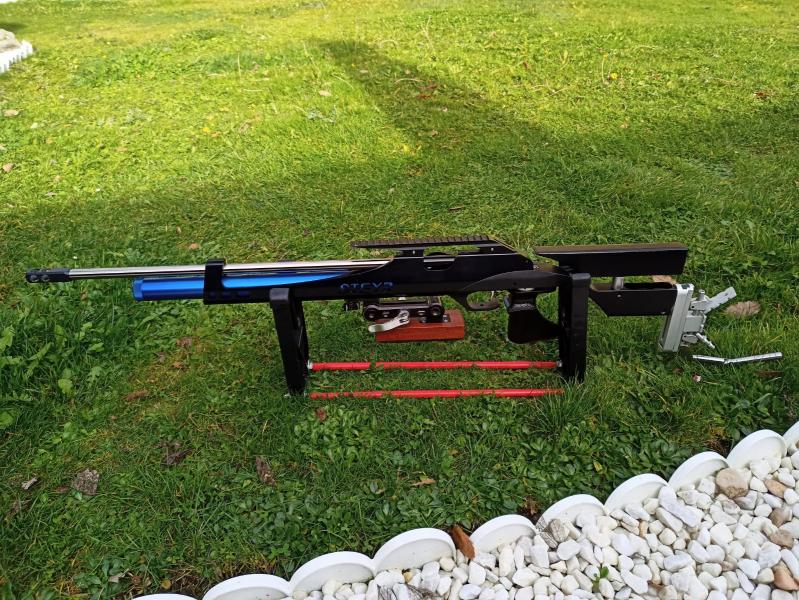 Lleva la rabera de MEC, FREE position, cañón largo original de Steyr con su Air strepper, sobre carril original y seta ajustable de Bruno Silva.