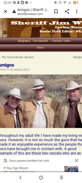 Os adjunto foto de un Ranger de Tejas que tenía amigos comunes con mi amigo. Se trata de Joaquin Jackson, uno de los últimos de la vieja escuela ("he was the real deal"). Aparece también con una carabina Winchester en .44-40, supongo que arma favorita de estos hombres.