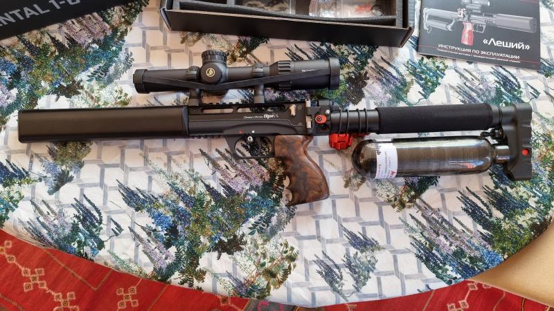 Edgun Leshiy 2 cal .25 cañon 350 mm, plenum largo, botella carbono 350 cc, grip en madera de nogal y moderador interno de 6 baffles. Comprada en Noviembre 2020