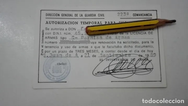 El agente que me atendió, consultó en el ordenador el estado de tramitación de las licencias y me indicó que la D y E ya las tenía concedidas, y la F estaba todavía en estudio/tramitación. Me dijo que como la D y la E ya las tenía autorizadas, ya podía guiar rifles, carabinas y escopetas, y para ello me expidió la tarjeta de “Autorización temporal para el uso de armas” con validez de 3 meses (la misma que dan cuando te caduca la licencia y tramitas la renovación) y me informó que con esa tarjeta temporal se pueden adquirir, guiar y utilizar armas con total normalidad.