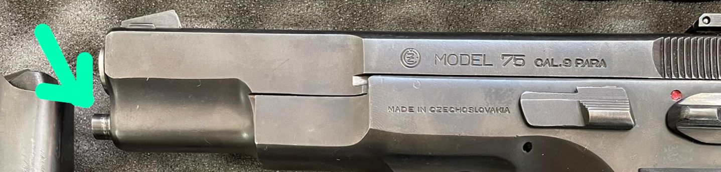 Quería hacer una pregunta a ver si algún compañero es capaz de resolverla, estoy mirando una CZ75 del 80, y al parecer el muelle recuperador está hecho en un armero y el dueño actual ya la compró en el estado actual que se encuentra el arma por lo que desconoce el motivo por cuál es y está así, os adjunto una fotillo a ver si me podéis arrojar algo de luz.