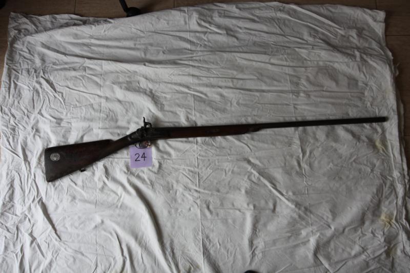 Escopeta de caza de avancarga, de un cañón. Mecanismo de pistón. Llave con muelle real externo. Caja para 01