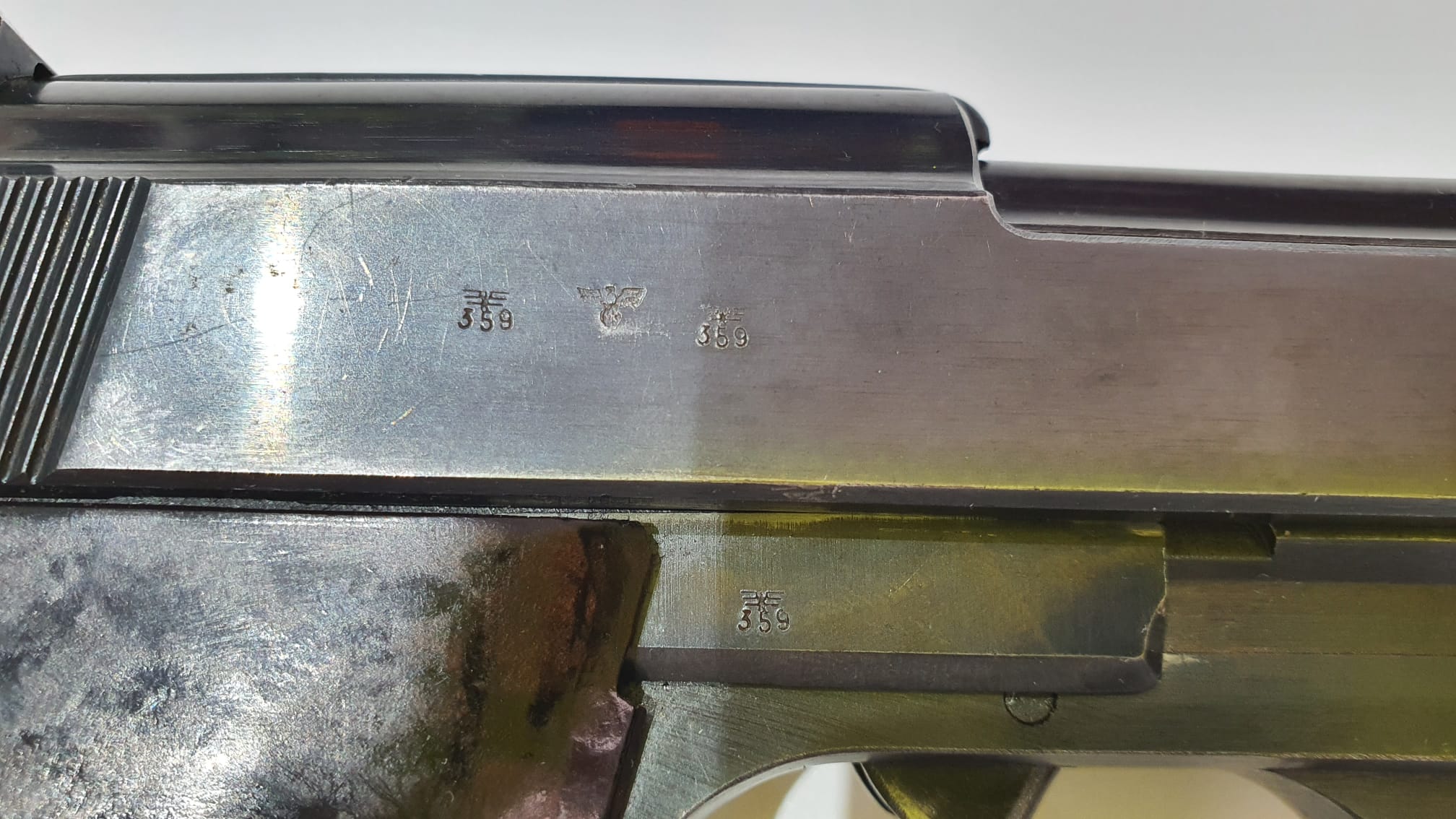Muy buena pieza y parece que los dos cargadores tienen el mismo número del arma, en las P38 eso es dificilísimo de encontrar.