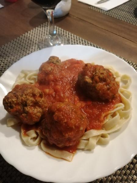 Y aca les dejo, con la misma cabra...una albondigas en salsa con unos fideos :D
