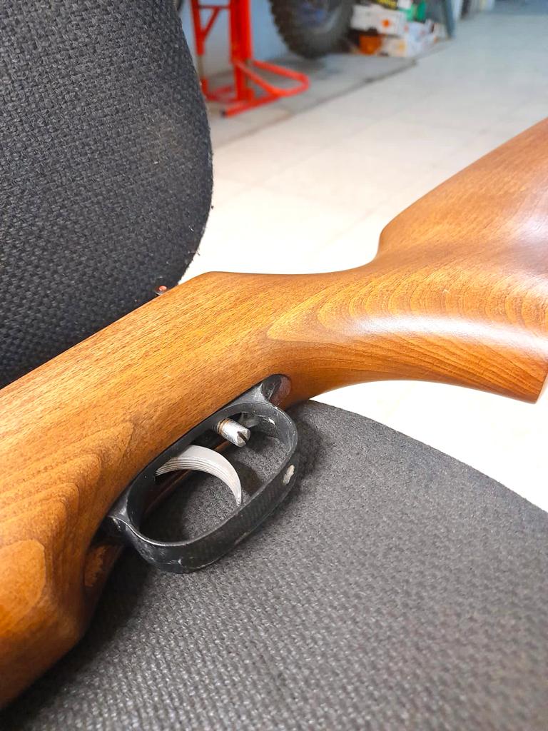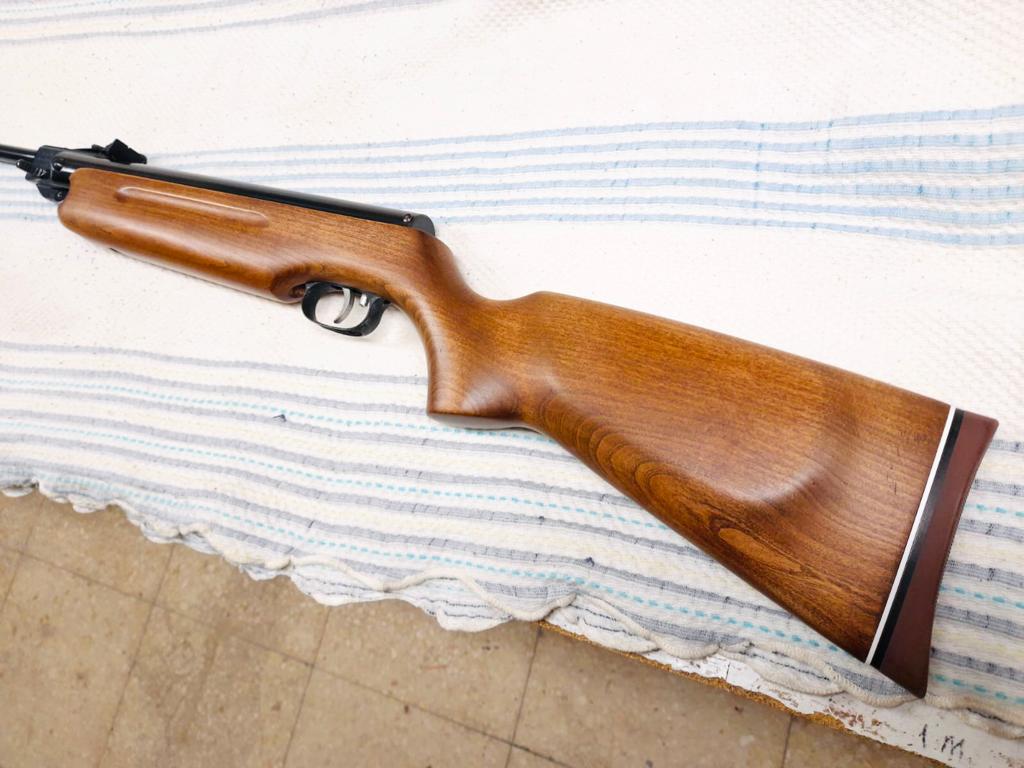 Hola, pongo a la venta esta unidad de Weihrauch HW35 en calibre 4,5mm. La carabina es de 1980 (sello y tórica sintéticos) y la culata es de 2006. Su funcionamiento y precisión son excelentes. El pavonado no presenta óxidos, pero en algunas zonas de contacto está algo desvanecido. La madera de la culata ha sido acabada a capricho con nogalina y barniz mate, impecable. Se le ha añadido el ribete en blanco de la cantonera para mejorar su estética. La carabina está a una potencia de 10j con balines de 0,48g. Aclaro cualquier duda y mando más fotos o vídeo detallado a los interesados. Pido por ella 220€ con portes incluidos. Un saludo.