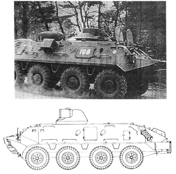 En los años 50, las unidades de fusileros soviéticos disponían de dos tipos de vehículos de ruedas los BTR 40 4x4 y los BTR 152 6x6, ambos ya obsoletos porque el BTR 40 era de los años 46-47 y solo podía llevar 8 fusileros la versión V o 6 la versión B no era anfibio y de techo descubierto la versión de línea, de ahí que en los 50 apareciera el BTR-152 6x6 igualmente de techo abierto y con capacidad para 18 fusileros. Ambos vehículos tuvieron multitud de variantes ya que fueron fabricados o modificados en todos aquellos países de la esfera soviética, pero sobre todo el BTR-152, casi todas fueron versiones de mando con techos cerrados, y su armamento en las dos versiones era la típica pesada de 12,7 mm DShK 1938/46 de 12,7 mm o la ligera de 7,62 SGBM.