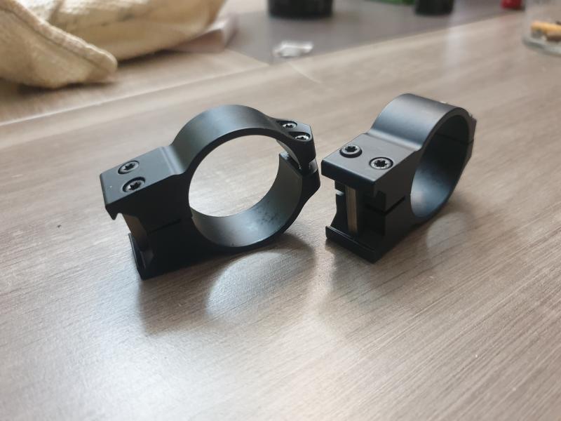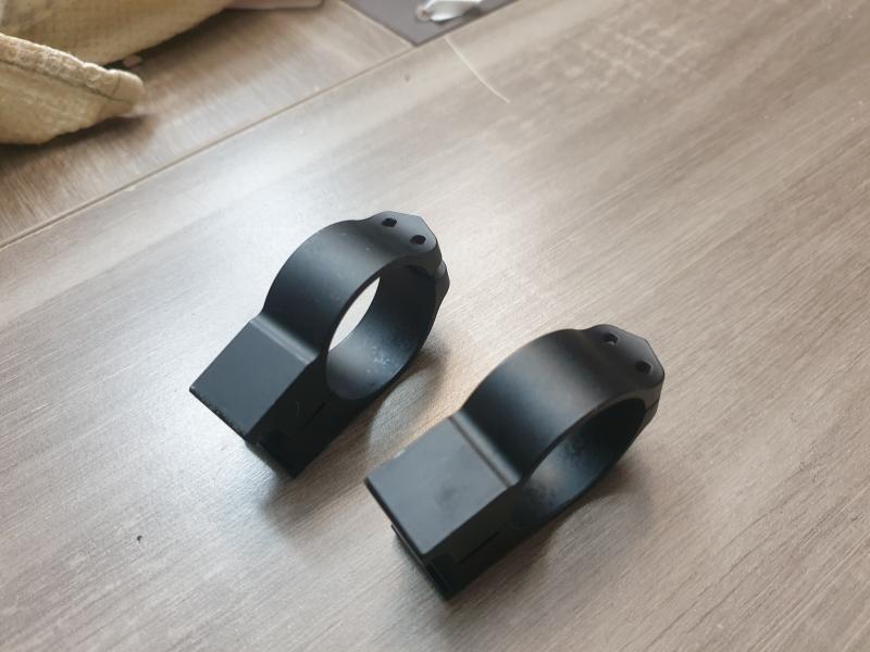 juego de anillas leupold desmontables bajas de 1 pulgada, y otro de anillas warne fijas altas de 34mm.