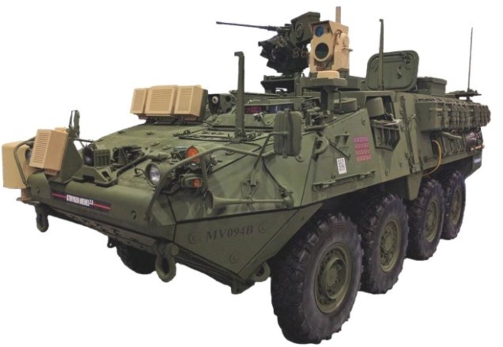 4.- M-1126 Stryker ICV Trophy con sistema Trophy APS israelita, en el cual el vehículo lleva un sistema de detección precoz de armas contra carro y activación de un sistema de contra medidas usado ya en muchísimos vehículos
