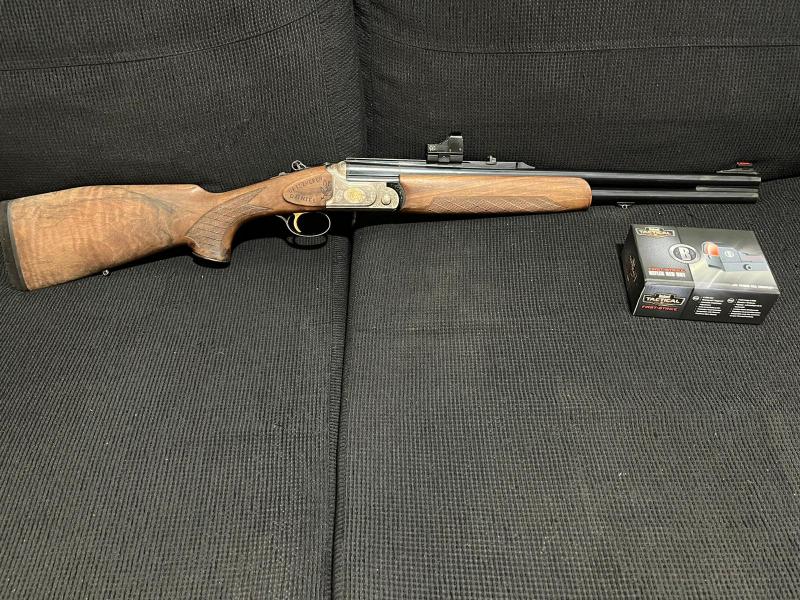 Un amigo vende escopeta superpuesta bettinsoli slug cañón liso de 55 cm , expulsora, selector de tiro , lleva un punto rojo Bushnell first strike , precio 800 negociables , se encuentra en Navarra