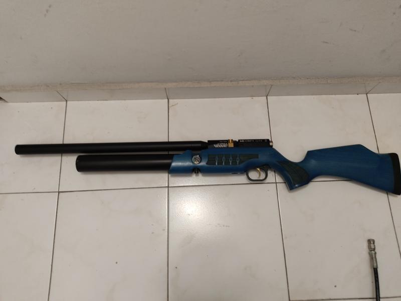 En calibre 5, 5 mm. Madera de color azul. Lleva una bomba Hill. Se envía. O recogida en mano en Vizcaya.