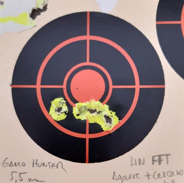 Como el verano es cuando dedico más tiempo al aire comprimido, estoy tirando con mi Gamo Hunter 440, en calibre 5,5, a 20 m con visor, con resultados, digamos, mejorables. Sé que es un arma diseñada para la caza de pequeños animales (disclaimer: allá donde sea legal) y el lateo, y ahí cumpliría de sobra, pero quiero ver hasta donde llega en precisión.