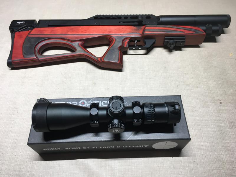 Vector optics modelo Veyron 3-12x44 SFP incluyendo monturas.