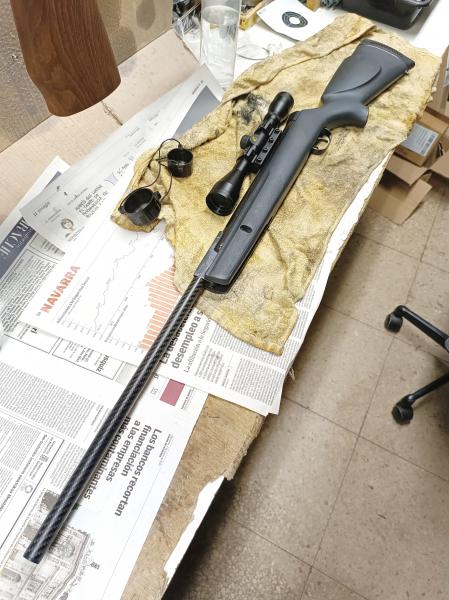 - Carrillera sobreelevada para mejorar el encare en la Artemis CP2 (hecha con tubo de esponja de flotador de piscina). Mejora muchísimo el encare, imprescindible en esta carabina ya que la culata es muy baja para tirar con visor.