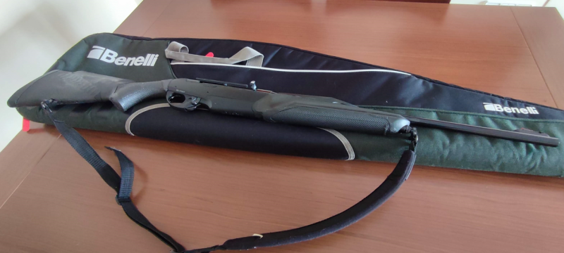 Incluye correa portafusil, funda original Benelli, cargador para dos cartuchos y otro adicional de 4 (no apto para caza).