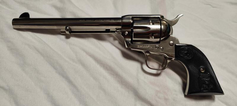 Hola compañero, en la pagina oficial de Colt, busqué por el numero de serie, y me puso esto, entonces es que está en sus archivos, no creo que hagan una copia Italiana exactamente igual con el mismo numero, unos me comentan que es un Colt de 3a generacion, otros una copia hecha por Aldo Uberti.