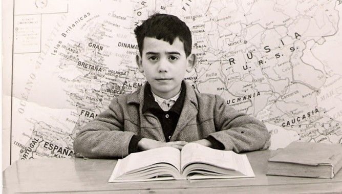 Esta es la tipica foto que nos hacian en la Escuela, siempre la misma postura y con el mapa al fondo.