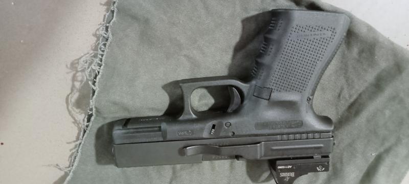De la Glock soy único propietario pocos disparos con un Burris que la hace divertida también tiene pinza de porte muy cuidada sin roces ni desgastes con poco uso. Se ve en Cantabria. 750 eu