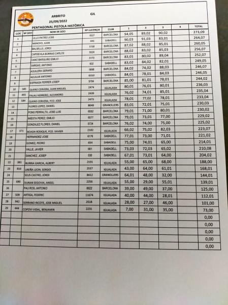 Ya hemos celebrado la cuarta de las cinco pruebas de este Pentangular de Armas Histórico Militares 2022 y esta vez con récord en el podium, el tercer puesto para un tirador del club de Sabadell con una P08 y 269 puntos, consiguiendo la segunda posición un miembro del club de Barcelona con una S/42 de 1936 y 275 puntos (una excelente tirada) siendo la primera posición para el tirador del club de Andorra con unos increíbles 282 puntos usando una Original Mauser.