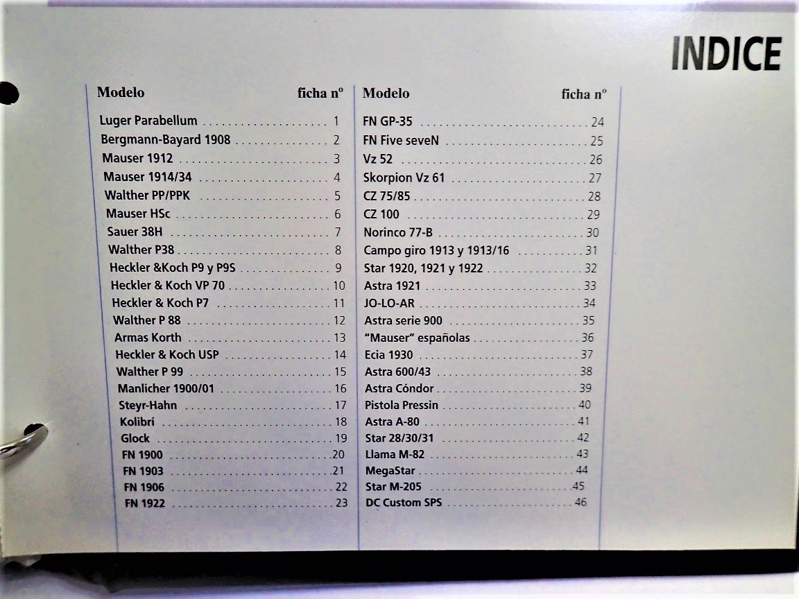 Vendo este libro-archivo en estado nuevo, con 96 fichas plastificadas a todo color, con fotografias, detalles tecnicos y desarme de las armas.