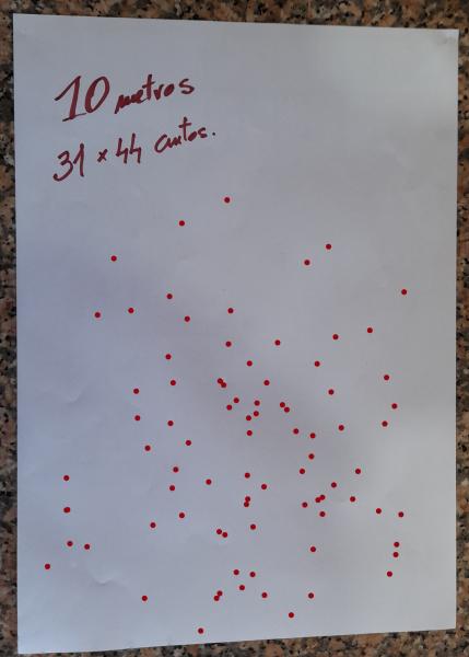 Adjunto fotos de las pruebas de plomeo a 10 metros sobre una hoja de papel de 31 x 44 centímetros, y una