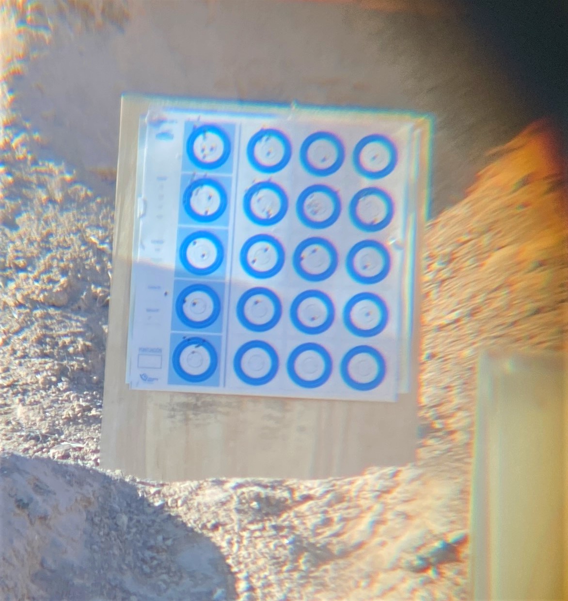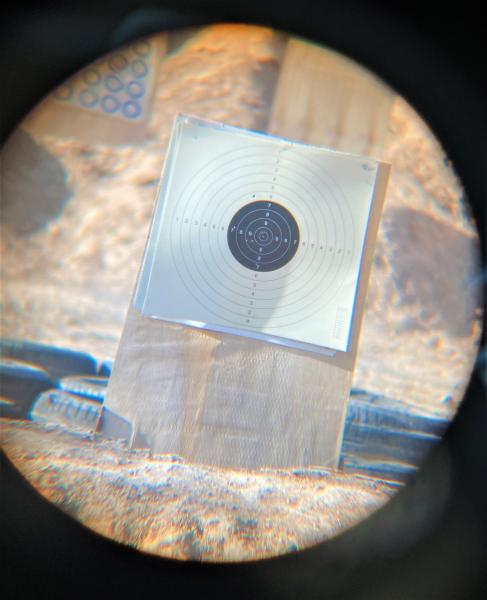 Como ejemplo, con este churro/telescopio, he llegado a confundir, a 50 metros, rasgados o rotos en el blanco, con impactos del 50 ( bola)..dándome cuenta al ir a cambiar blanco, que estuve regulando mal el rifle, porque lo que creía eran impactos bajos, era un roto que no me habia fijado y el parabalas teñía de obscuridad ( muy pegado a blanco)