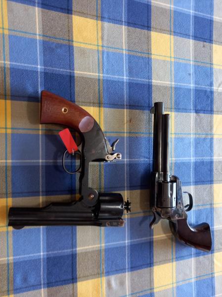 Se venden dos revólveres,un schofield y un peacemaker calibre 45 LC. Ambos en libro de coleccionista.El Armero es para custodiar esas armas. Precio del lote 1600€