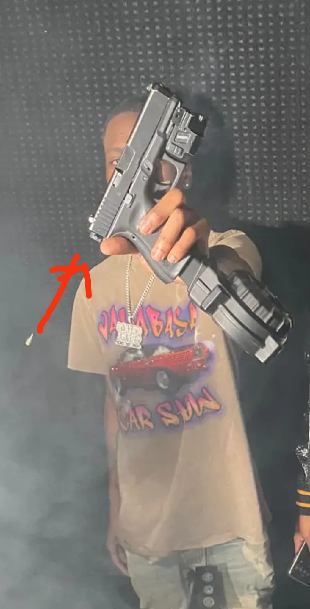 Bueno para los que crean que es de troll, una foto sacada de Internet, una vergüenza en un pais civilizado un menor de edad de 21 con una pistola con selector.