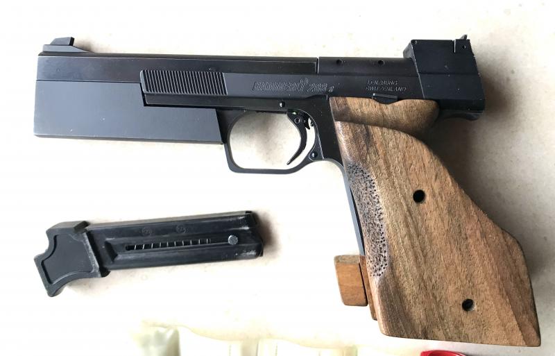 Se ofrece una magnifica pistola Hammerli modelo 208S, estado excelente sin signos de uso, tigestop, gatillo de 2 tiempos 1.050 grms, calibre 22Lr, seis pulgadas, cachas anatómicas de origen sin tocar. Con dos contrapesos, de 90 grms y 270 grms, dos cargadores. Este modelo fue campeón del mundo pistola standar en 584 puntos sobre 600.