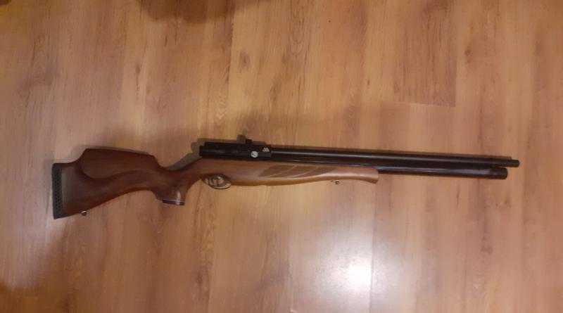 Carabina PCP 5,5 mm de 24 julios (aunque tiene potencia fácilmente regulable con una rueda externa). Su gran precisión, fiabilidad, calidad en los acabados y belleza son los propios de Air Arms. La he utilizado para tirar a 100 metros con muy buen resultado. Está impecable ya que ha sido muy cuidada y poco sacada, la compré en Armería Merino en 2020.