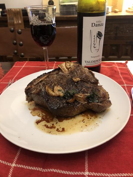 Hoy para comer acelgas hervidas y chuletón de vaca gallega vieja con seis semanas de maduración en cámara 90