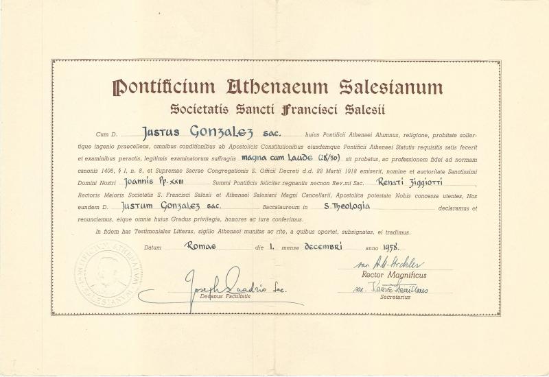 Titulo de THEOLOGIA expedido en Roma en 1958 en nombre del Papa Juan XXlll